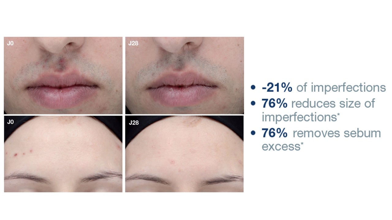 • Kelebihan sebum berkurang pada 84%* kasus.